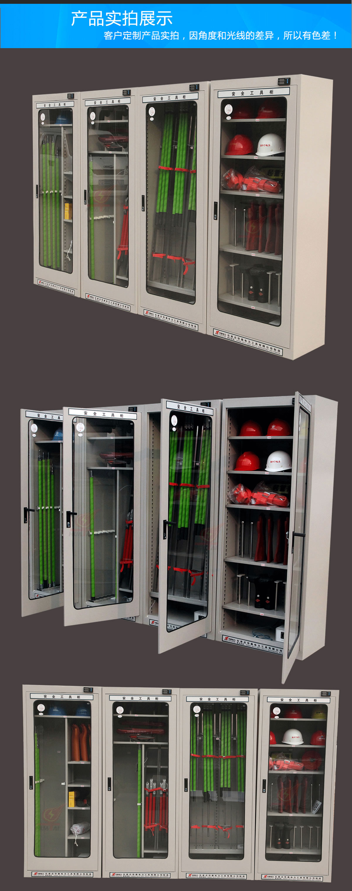 石家莊華泰電力有限公司專業(yè)生產(chǎn)安全工具柜,我公司安全工具柜配備檢測報告和合格證。